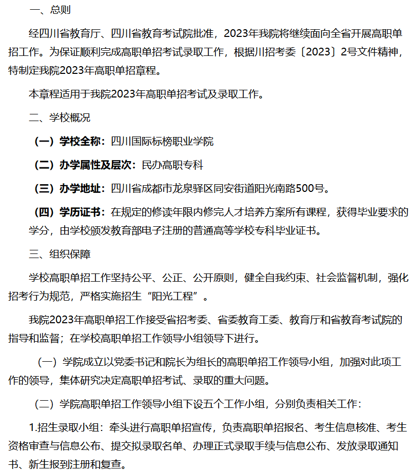 四川国际标榜职业学院2023年高职教育单独招生章程